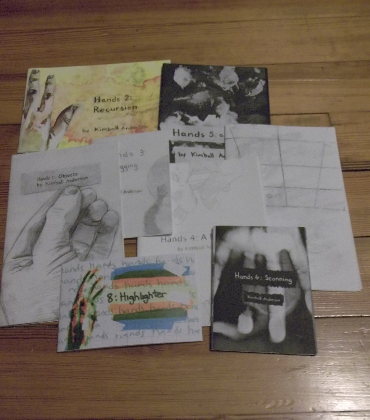 Each of these comics is an experiment visually, textually, and in terms of what I am trying to get across. The common thread is the hand, which can mean a POV story where you are inside the characters seeing your hands, can mean that the comic is painted with my hands like Hands 5. Or anything!